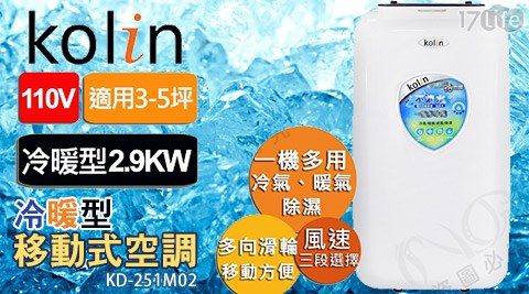 【找便宜】KOLIN歌林-3-5坪DIY冷暖型移動式空調(KD-251M02)